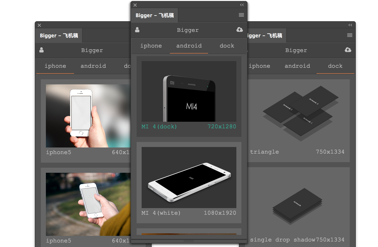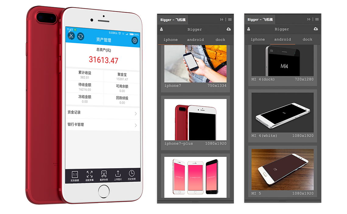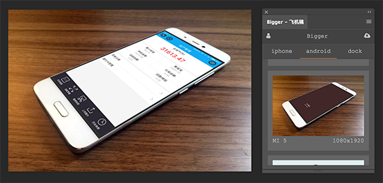 提供几十款精美iphone模板, 一键点击, 自动根据设计稿匹配效果。
