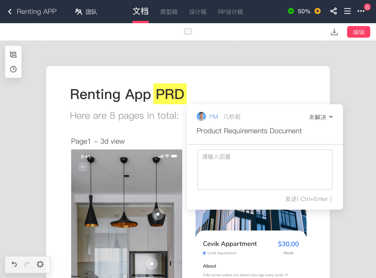 创建原型图 、邀请、批注图钉,之后就可以协同工作了。所有的讨论、意见、版本,都会保留。(国内独有,国外同类产品独有)